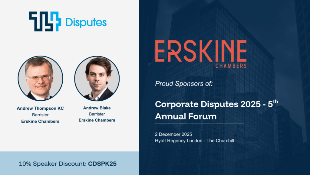 Erskine Chambers is delighted to sponsor the ThoughtLeaders4 Corporate Disputes Forum taking place tomorrow, 2 December 2025, at the Hyatt Regency London – The Churchill.